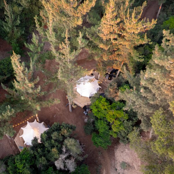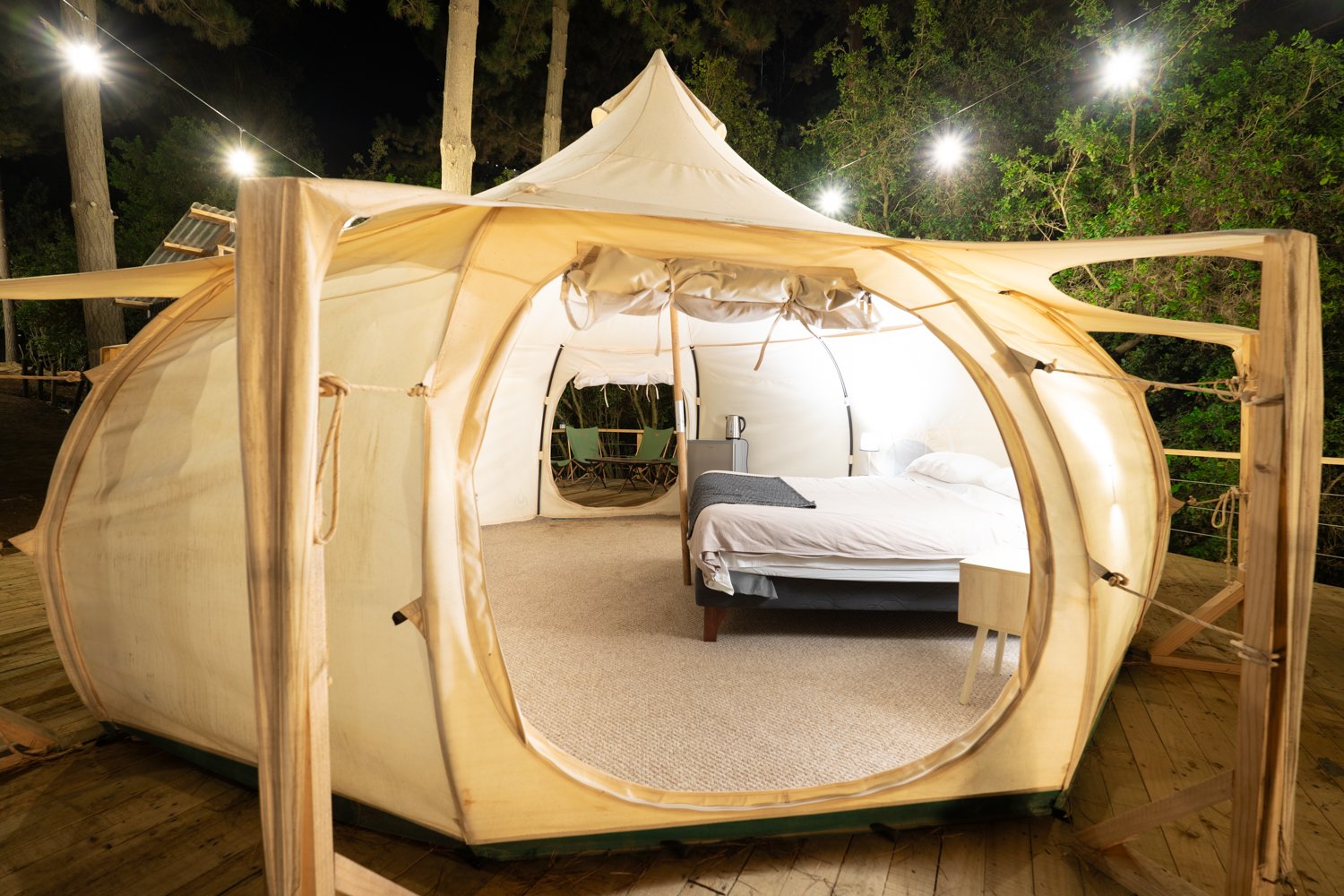 Carpas de glamping completamente equipadas para 4 a 5 personas.